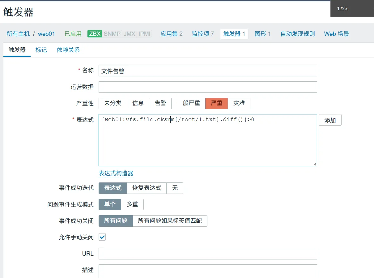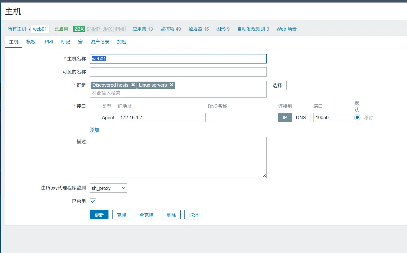 Hostname=web01 # 必须设置为主机名称注意: 先删除自动发现功能防止冲突