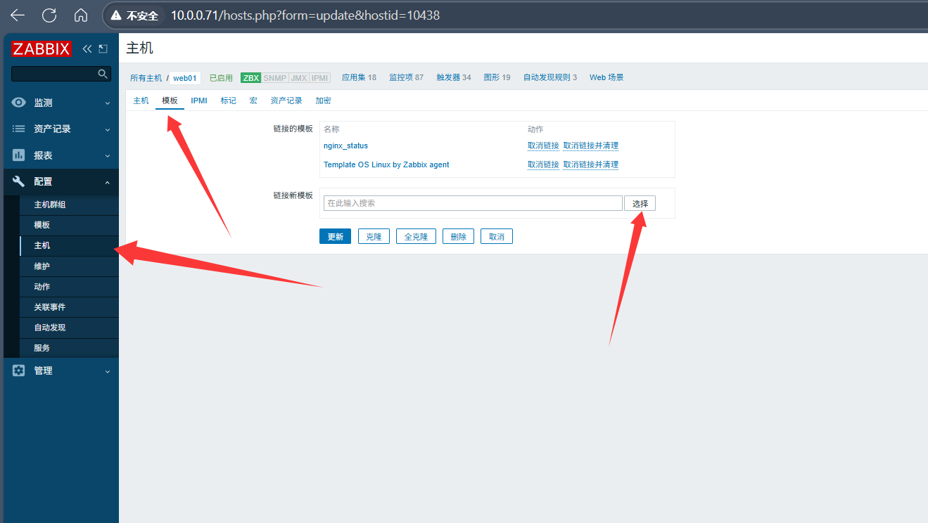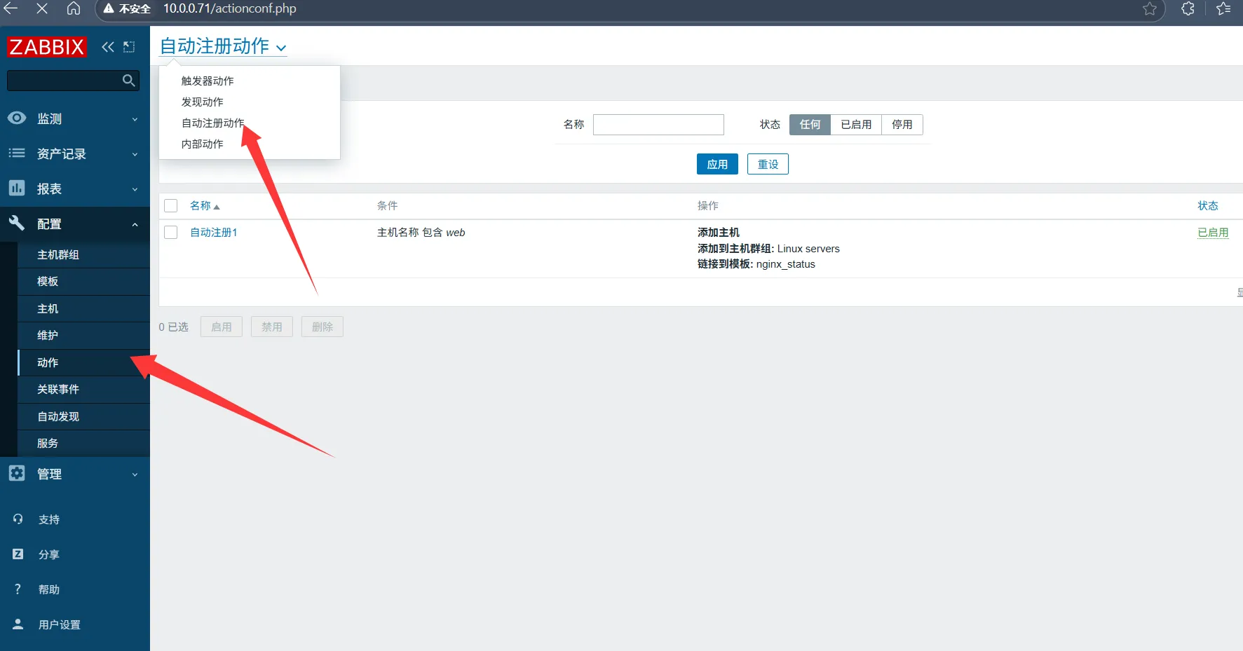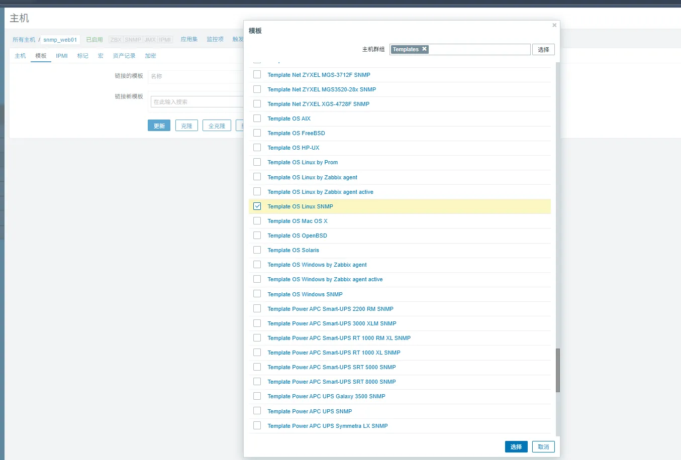 发现服务器后进行动作处理 添加主机 关联模板 关联报警等